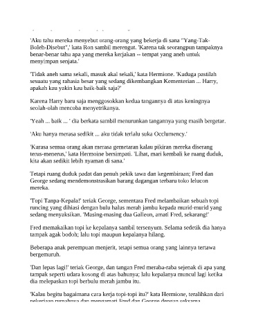 'Dan lepas lagi!' teriak George, dan tangan Fred meraba-raba sejenak di apa yang