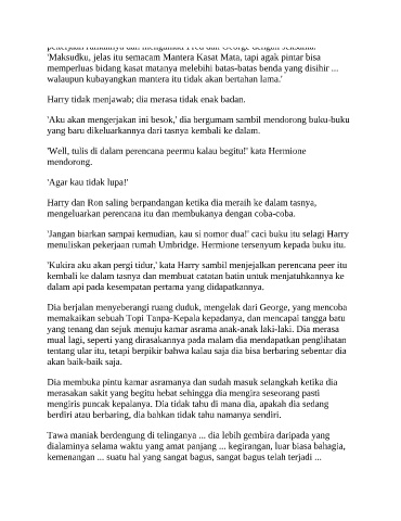 pekerjaan rumahnya dan mengamati Fred dan George dengan seksama.