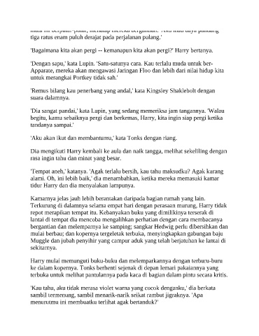ke dalam kopernya. Tonks berhenti sejenak di depan lemari pakaiannya yang