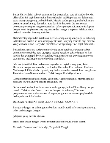 Tertanda: Dolores Jane Umbridge, Penyelidik Tinggi.