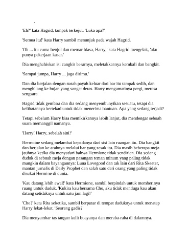 'Eh?' kata Hagrid, tampak terkejut. 'Luka apa?'