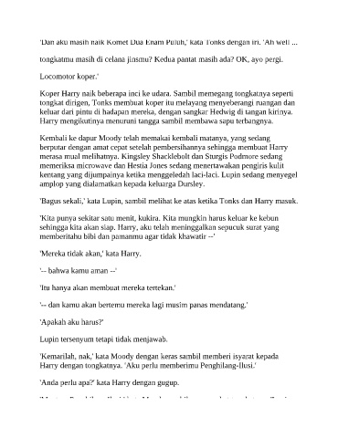 'Dan aku masih naik Komet Dua Enam Puluh,' kata Tonks dengan iri. 'Ah well ...