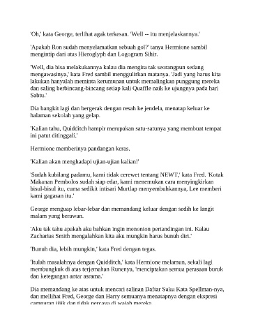 'Sudah kubilang padamu, kami tidak cerewet tentang NEWT,' kata Fred. 'Kotak
