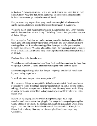 Harry naik ke ranjang sambil memikirkan pertandingan itu. Sangat
