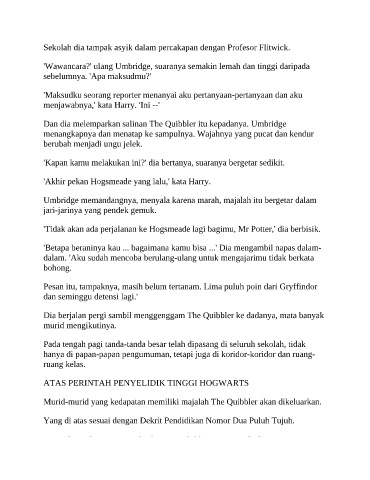 'Wawancara?' ulang Umbridge, suaranya semakin lemah dan tinggi daripada