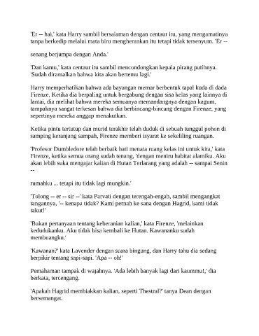 'Er -- hai,' kata Harry sambil bersalaman dengan centaur itu, yang mengamatinya