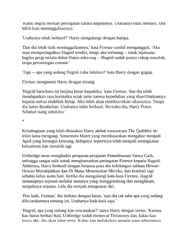 'Hagrid, apa yang sedang kau rencanakan?' tanya Harry dengan serius. 'Karena