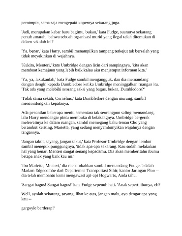 dengan dengki kepada Dumbledore ketika Umbridge meninggalkan ruangan itu.