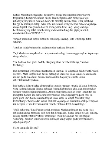Ketika Marietta mengangkat kepalanya, Fudge melompat mundur karena