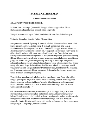 Dolores Jane Umbridge (Penyelidik Tinggi) telah menggantikan Albus