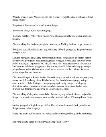 'Baiklah, baiklah. Potter,' kata Snape, 'kita akan melanjutkan pelajaran ini besok