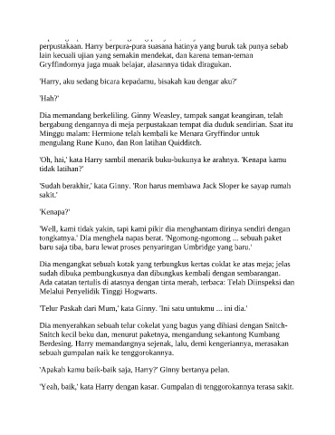 'Oh, hai,' kata Harry sambil menarik buku-bukunya ke arahnya. 'Kenapa kamu