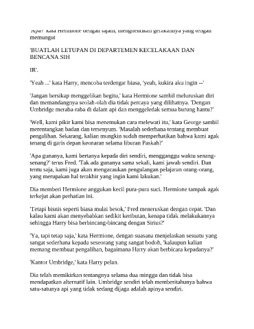 'Yeah ...' kata Harry, mencoba terdengar biasa, 'yeah, kukira aku ingin --'