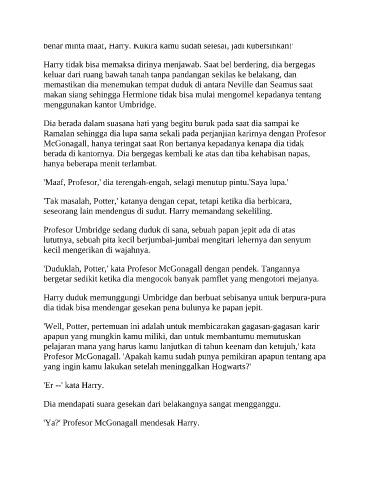 'Duduklah, Potter,' kata Profesor McGonagall dengan pendek. Tangannya