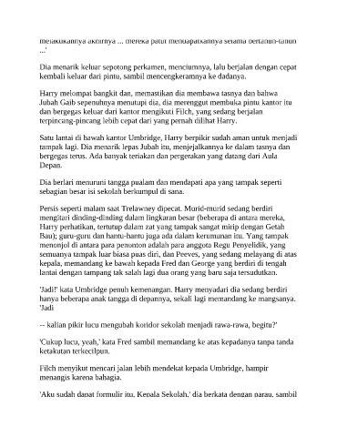 dan bergegas keluar dari kantor mengikuti Filch, yang sedang berjalan