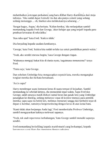 'Kau tahu apa?' kata Fred. 'Kukira tidak.'