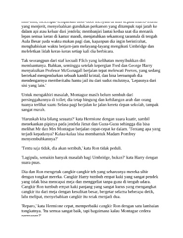 'Lagipula, semakin banyak masalah bagi Umbridge, bukan?' kata Harry dengan