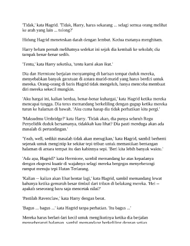 'Tidak,' kata Hagrid. 'Tidak, Harry, harus sekarang ... selagi semua orang melihat