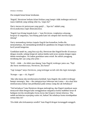 'Hagrid,' Hermione berkata dalam bisikan yang hampir tidak terdengar melewati