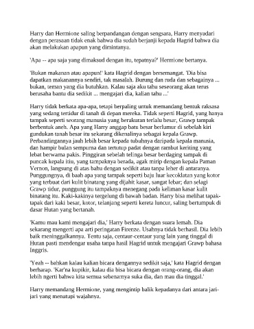 'Bukan makanan atau apapun!' kata Hagrid dengan bersemangat. 'Dia bisa
