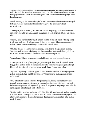 'Kukira sudah berakhir, kalian tahu!' kalian Hagrid, masih memicingkan mata ke