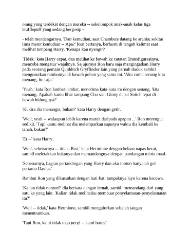 menang. Apakah kamu lihat tampang Cho saat Ginny dapat Snitch tepat di