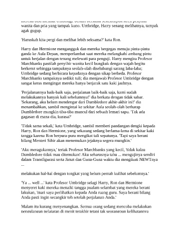 Umbridge sedang berbicara kepadanya dengan sikap berbeda. Profesor