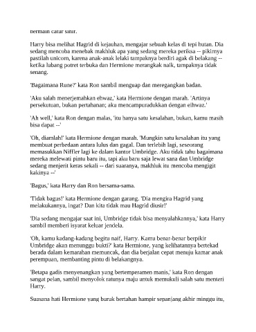 'Tidak bagus!' kata Hermione dengan garang. 'Dia mengira Hagrid yang