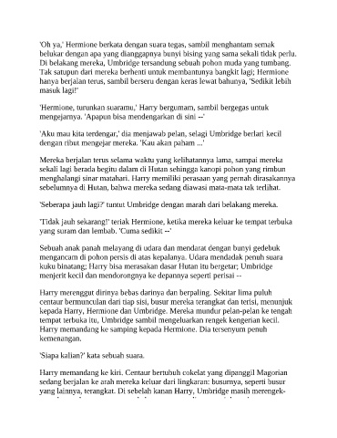 'Aku mau kita terdengar,' dia menjawab pelan, selagi Umbridge berlari kecil