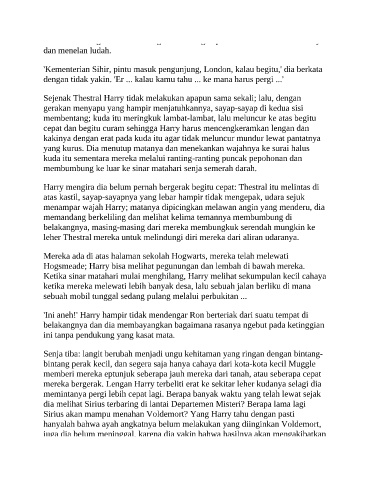 Harry mengira dia belum pernah bergerak begitu cepat: Thestral itu melintas di