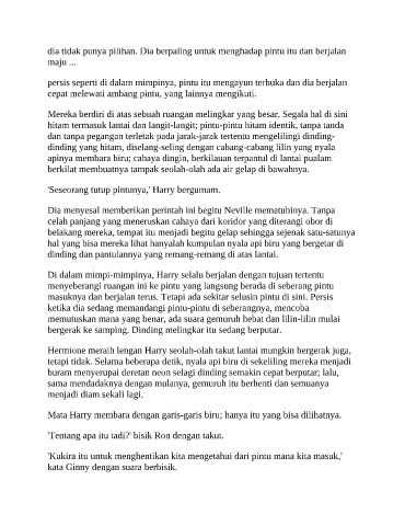 Hermione meraih lengan Harry seolah-olah takut lantai mungkin bergerak juga,