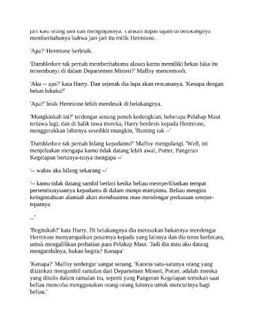 'Kenapa?' Malfoy terdengar sangat senang. 'Karena satu-satunya orang yang
