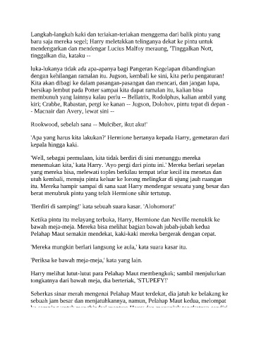 menemukan kita,' kata Harry. 'Ayo pergi dari pintu ini.' Mereka berlari sepelan