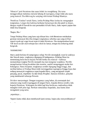 'Silencio!' jerit Hermione dan suara lelaki itu menghilang. Dia terus