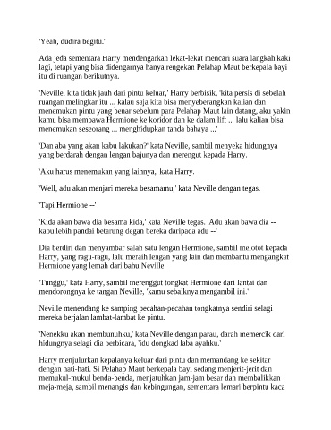 'Neville, kita tidak jauh dari pintu keluar,' Harry berbisik, 'kita persis di sebelah