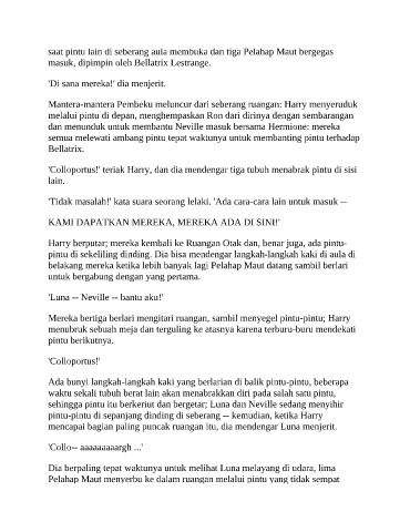 'Colloportus!' teriak Harry, dan dia mendengar tiga tubuh menabrak pintu di sisi