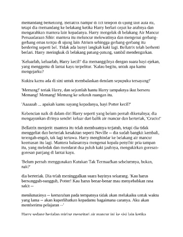 terengah-engah, tak lagi tertawa. Harry menghindar ke belakang air mancur