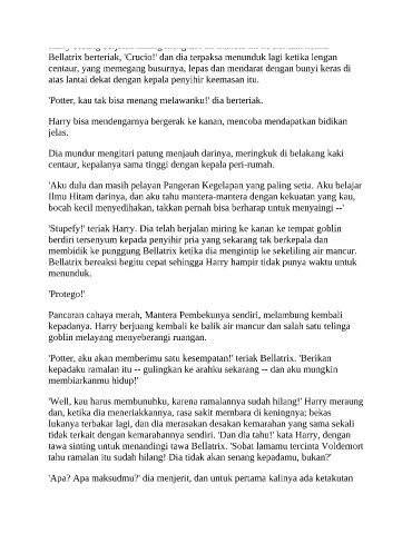 'Potter, aku akan memberimu satu kesempatan!' teriak Bellatrix. 'Berikan