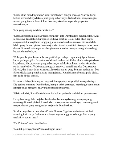 'Karena kesalahankulah Sirius meninggal,' kata Dumbledore dengan jelas. 'Atau