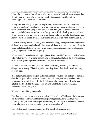 'Harry, aku berhutang penjelasan kepadamu,' kata Dumbledore. 'Penjelasan