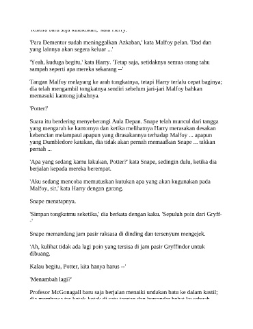 'Para Dementor sudah meninggalkan Azkaban,' kata Malfoy pelan. 'Dad dan