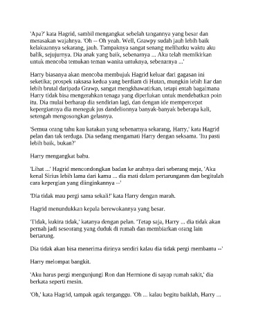 'Tidak, kukira tidak,' katanya dengan pelan. 'Tetap saja, Harry ... dia tidak akan