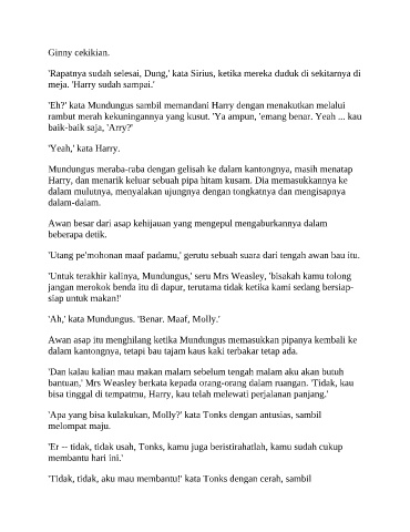 'Ah,' kata Mundungus. 'Benar. Maaf, Molly.'