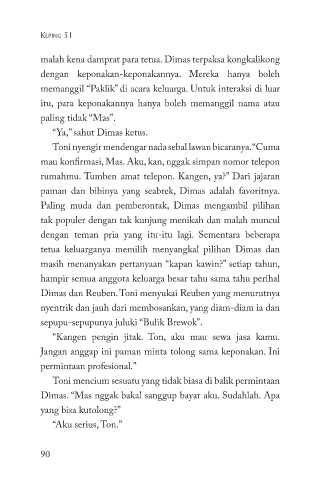 Toni nyengir mendengar nada sebal lawan bicaranya. “Cuma