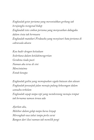 Engkaulah sayap tanpa tepi yang membentang menuju tempat