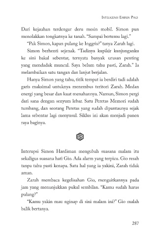 sekaligus suasana hati Gio. Ada alarm yang terpicu. Gio resah