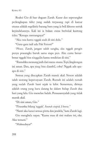 “Nanti aku kunci semua pintu dan jendela,” kata Zarah lagi.