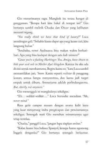 Inggris denganku?” Gio bertanya setengah berkumur.