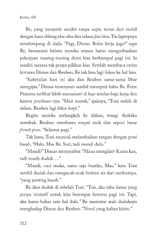 menghadap Dimas dan Reuben. “Novel yang kalian kirim.”