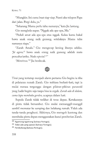 di pelataran rumah Zarah. Gio terbiasa berhati-hati, tapi ia